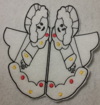 This cute double sided angel comes in 4×4 up to 7.7 size ITH , just fold her in half and you have her on both sides.