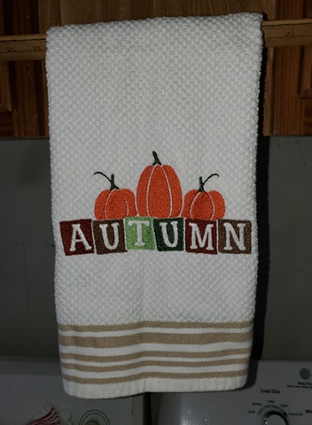 Three pumpkins and Autumn perfect for towels 7×5