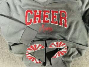 Support your kids by showing team spirit for their Cheer sport with this cute Cheer Mom Or Cheer Mama applique! Can also use heat Press Vinyl from Siser