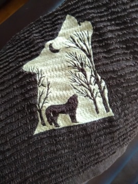 This 5×7 design is perfect for wolf lovers and looks great on a kitchen towel