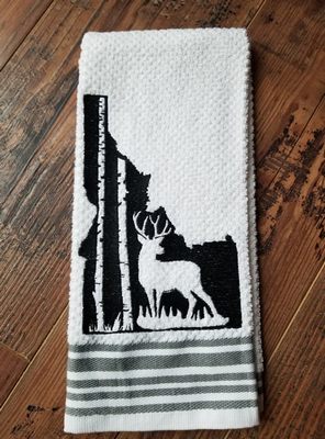 This beautiful state of Idaho deer in trees comes in 5×7 , great for towels, pillows or picture