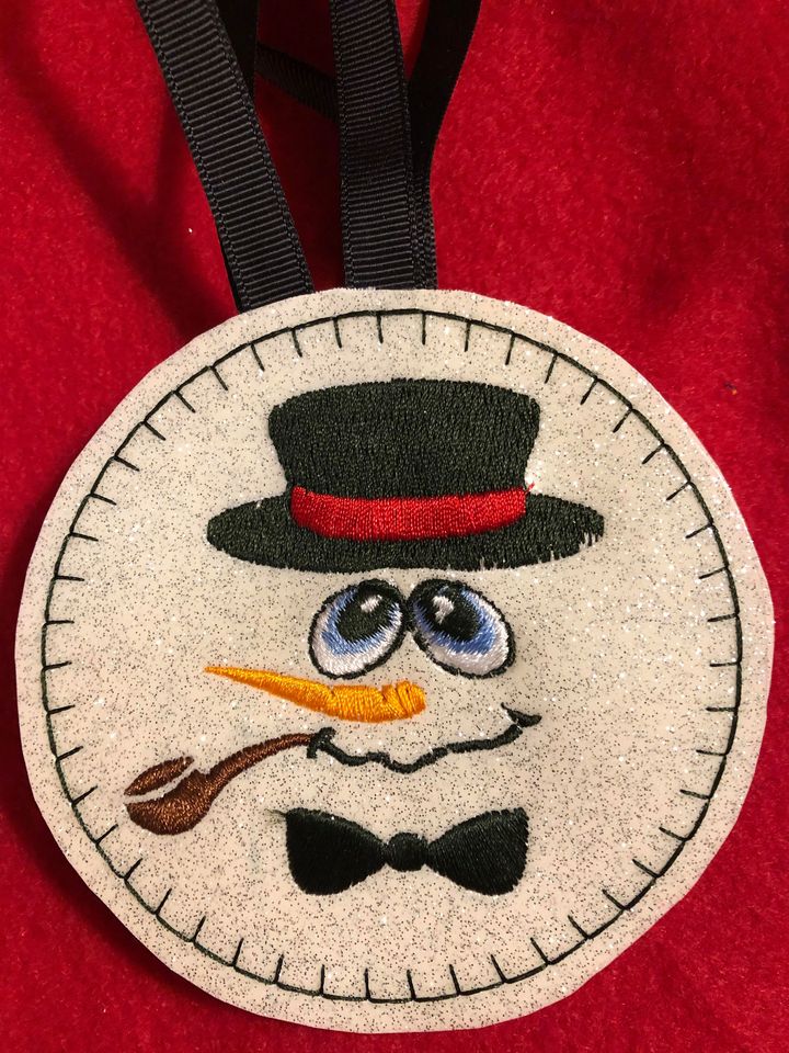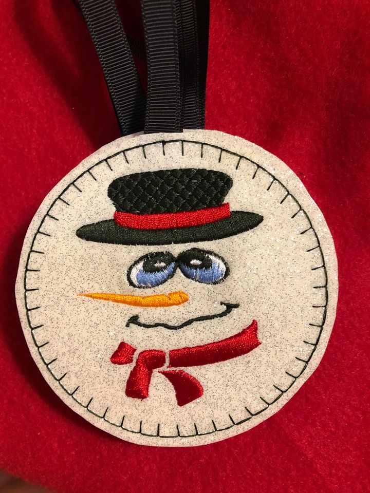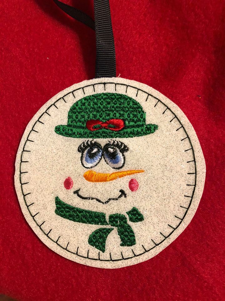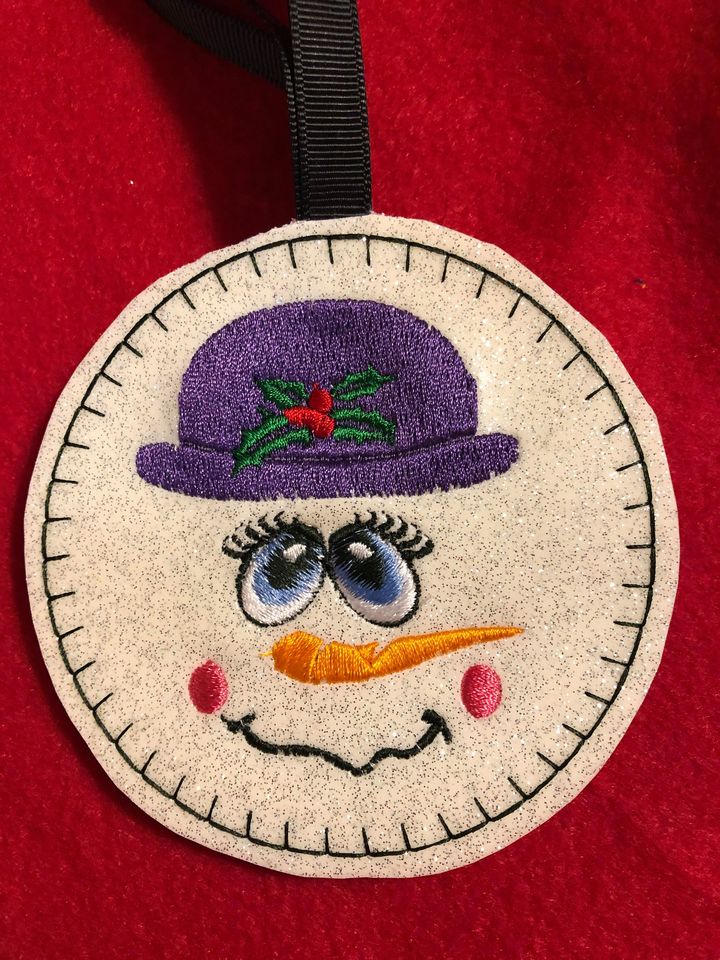 These cute snowpeople are fast and easy, can be done on felt or vinyl. 4×4 hoop per character
